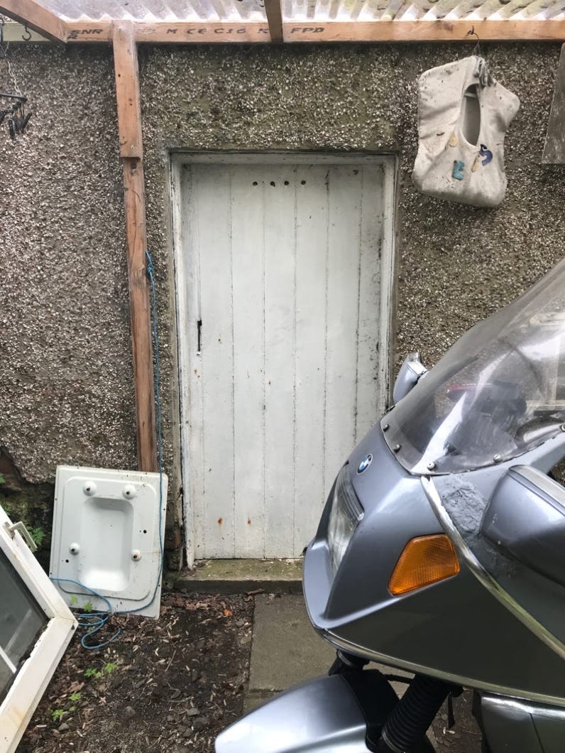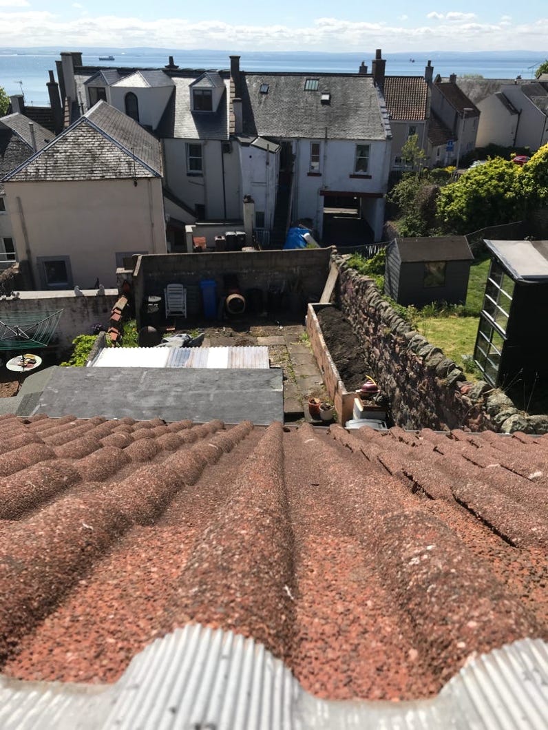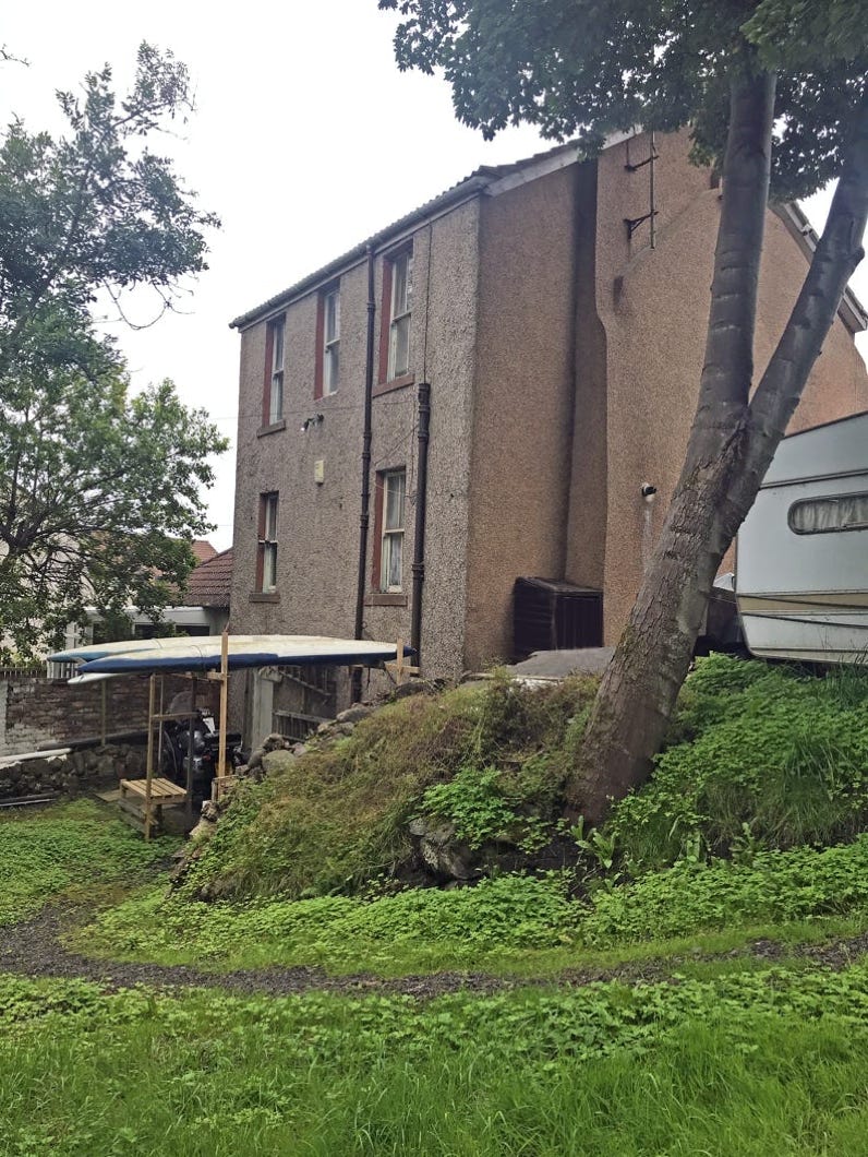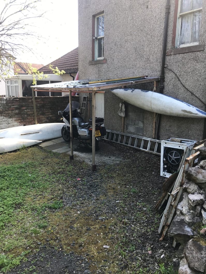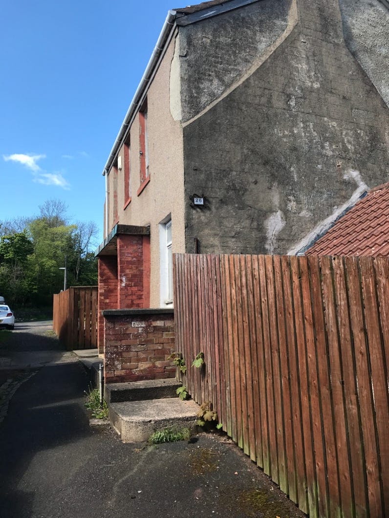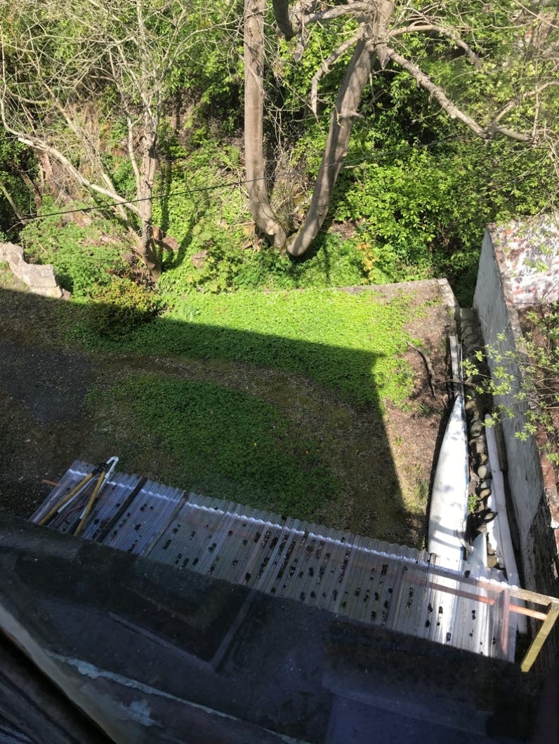 The house next door is on a lower level than the main part of the house, so that only the roof space is attached to our gable end.