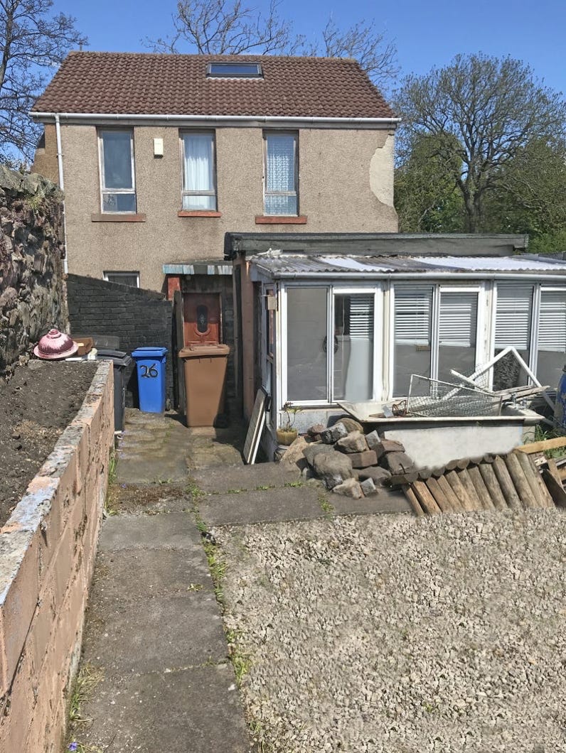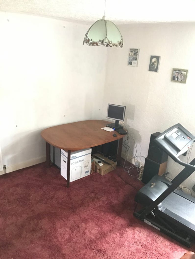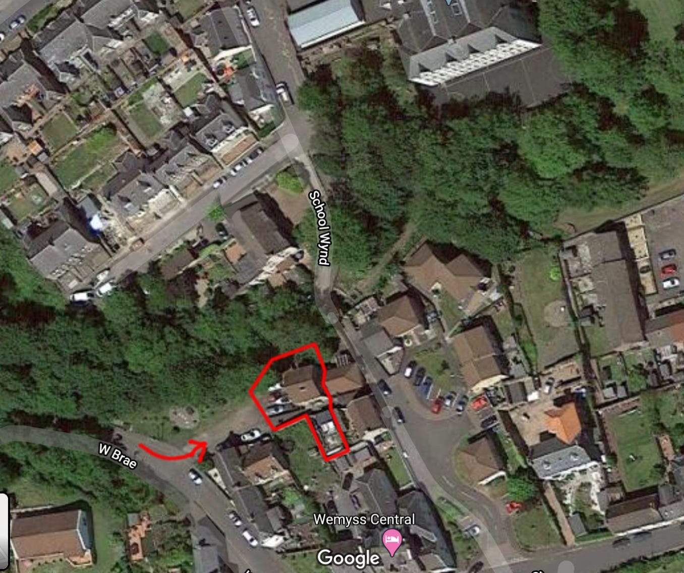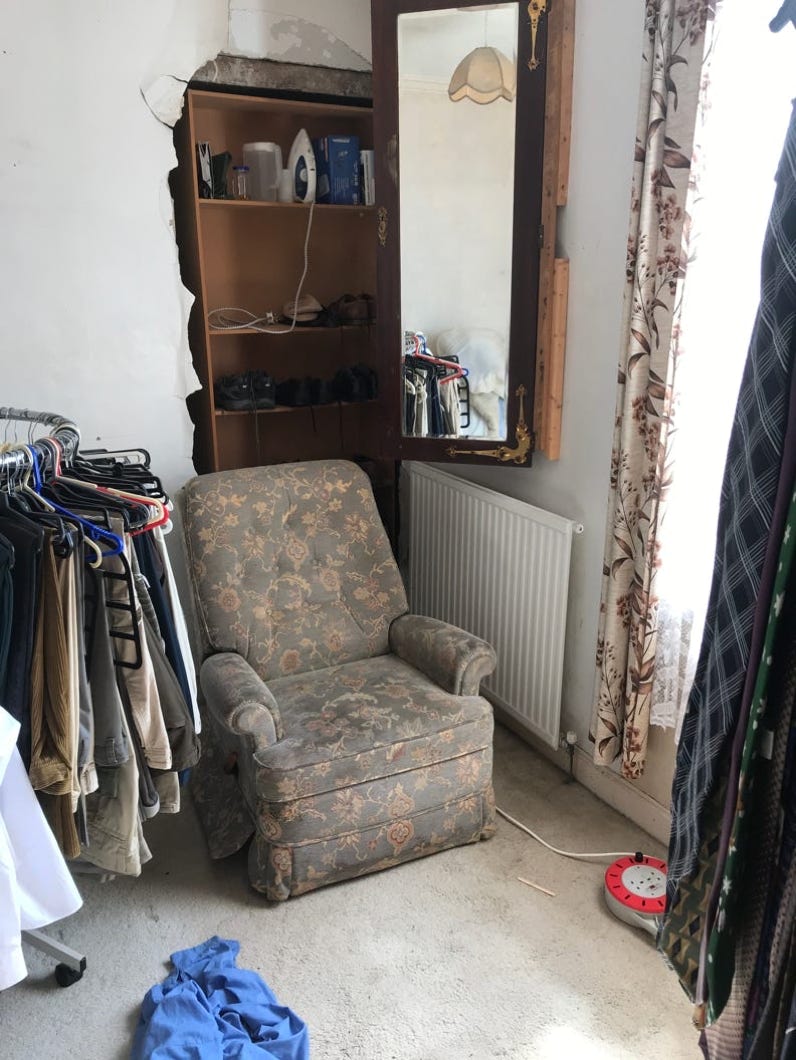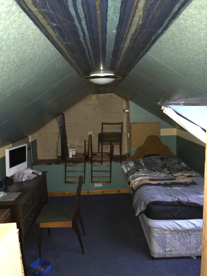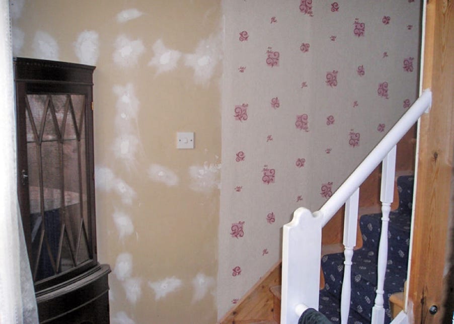 The house next door is on a lower level than the main part of the house, so that only the roof space is attached to our gable end.