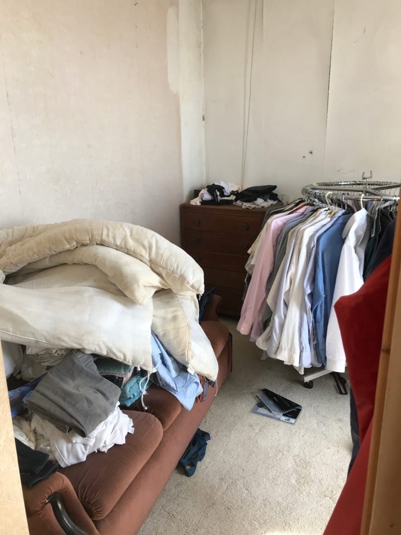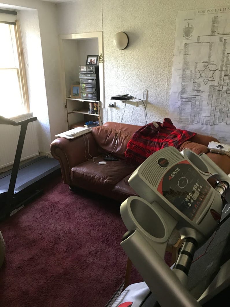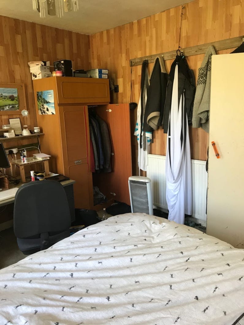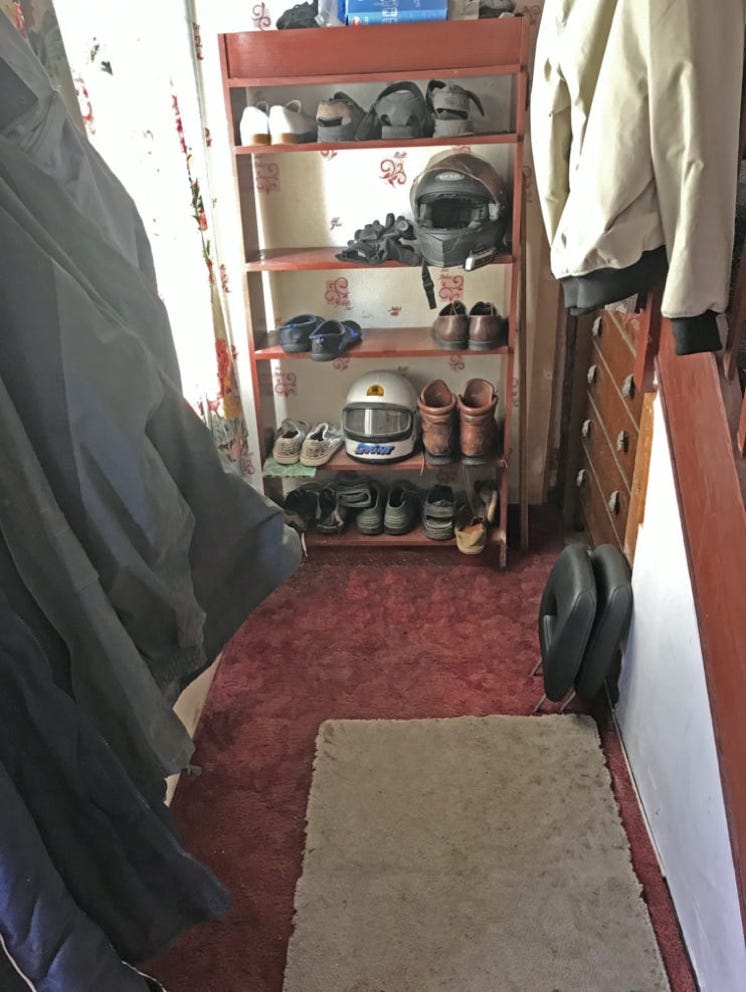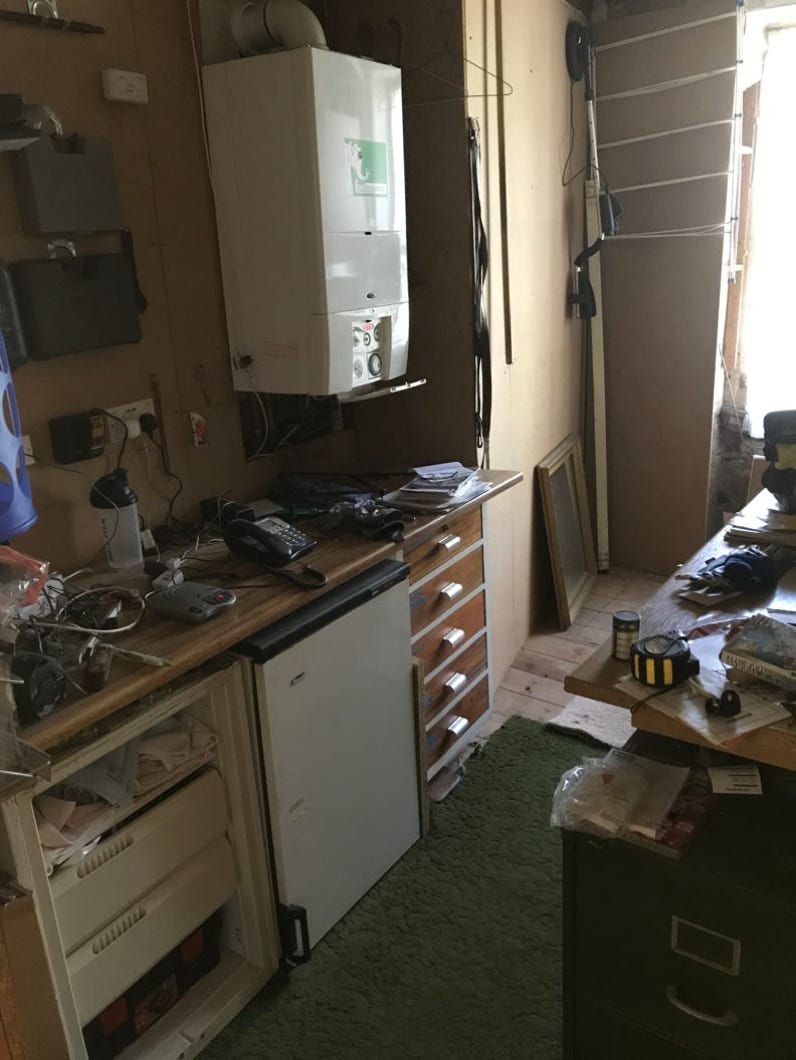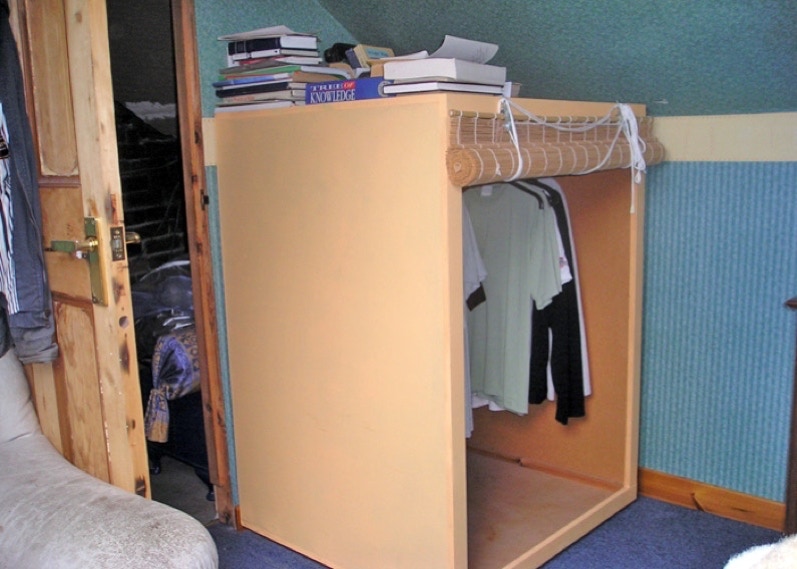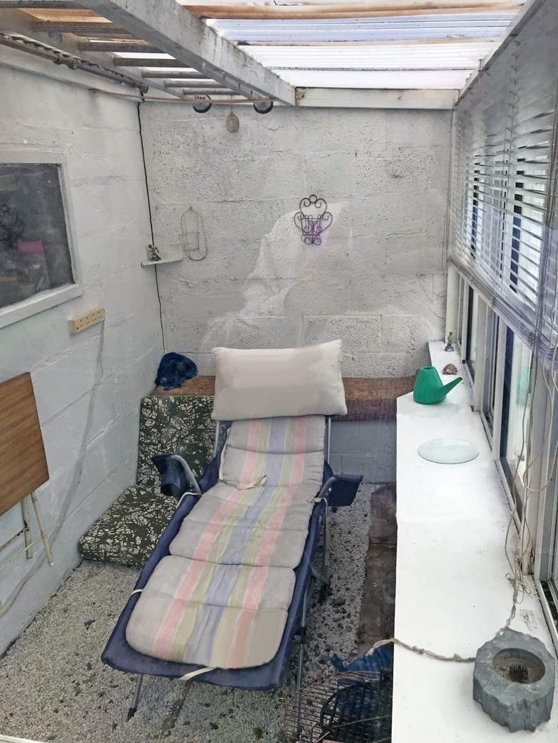 The house next door is on a lower level than the main part of the house, so that only the roof space is attached to our gable end.