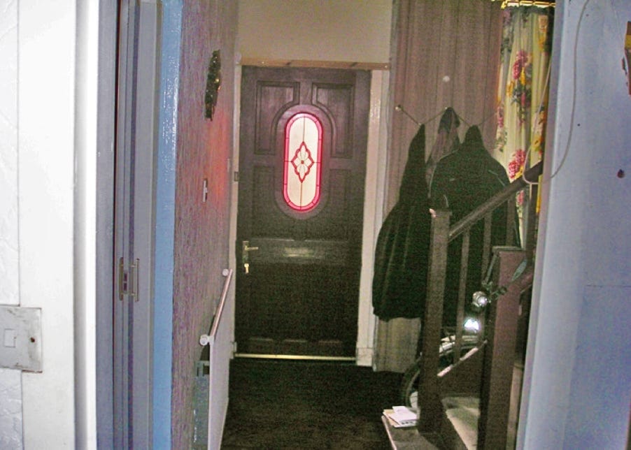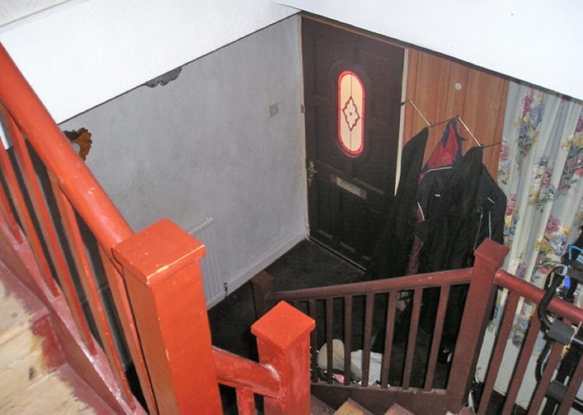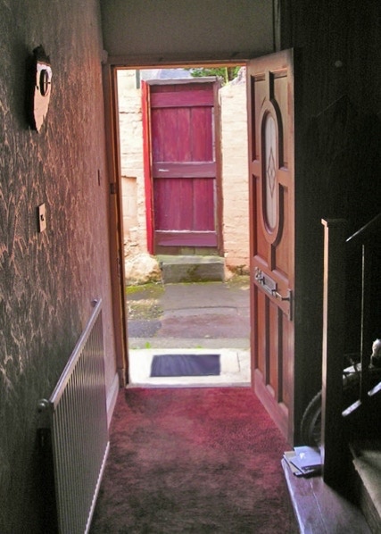 Front Door Vestibule, also showing stairway (on right) to first floor. Picture below shows gate to front garden.